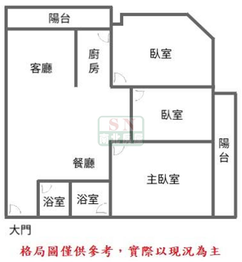 3房 2 廳 2 衛 2 陽