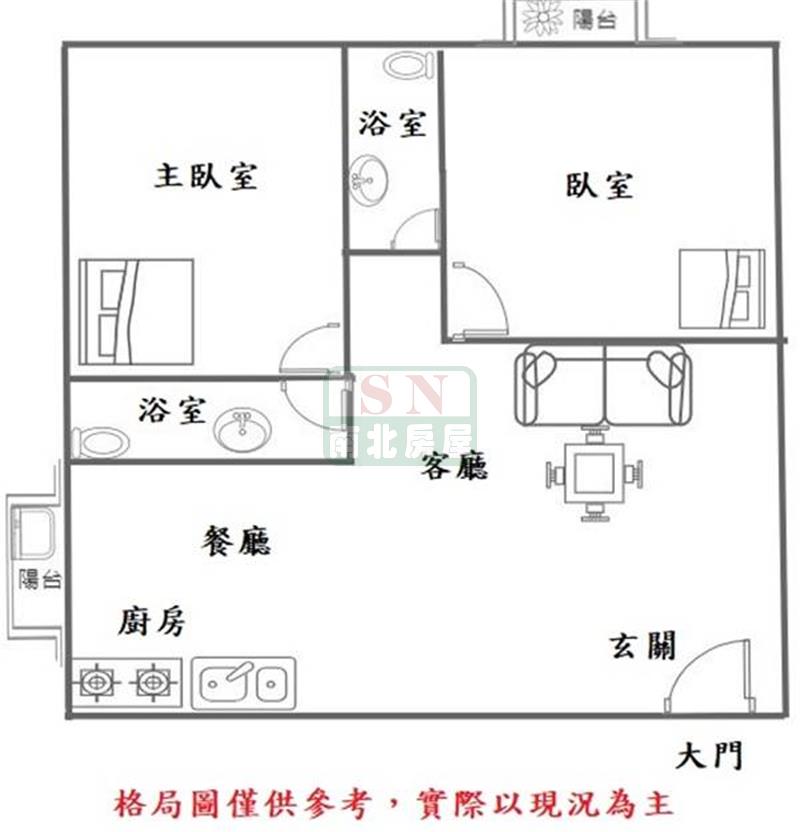2房 2 廳 2 衛 2 陽