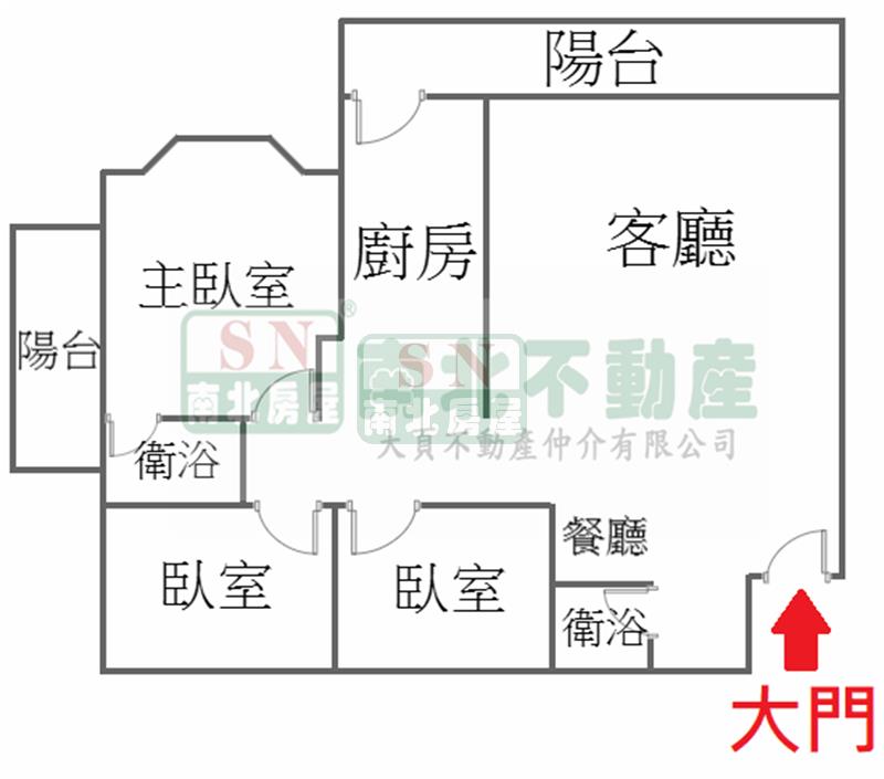 3房 2 廳 2 衛 2 陽