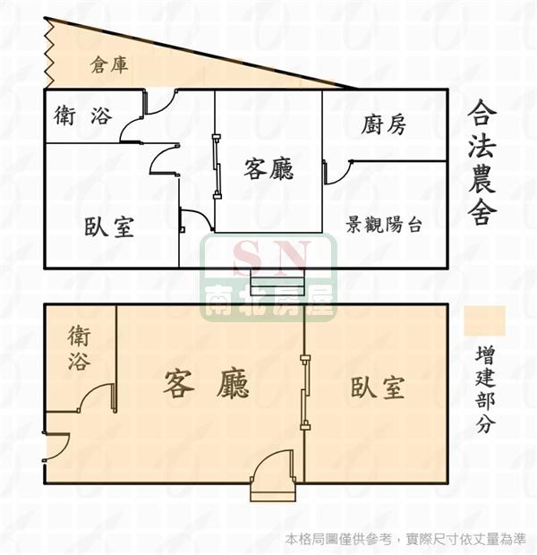 農舍合法另有增建,土地4.6分好規劃利用,擁有2房2廳2衛+開放涼台