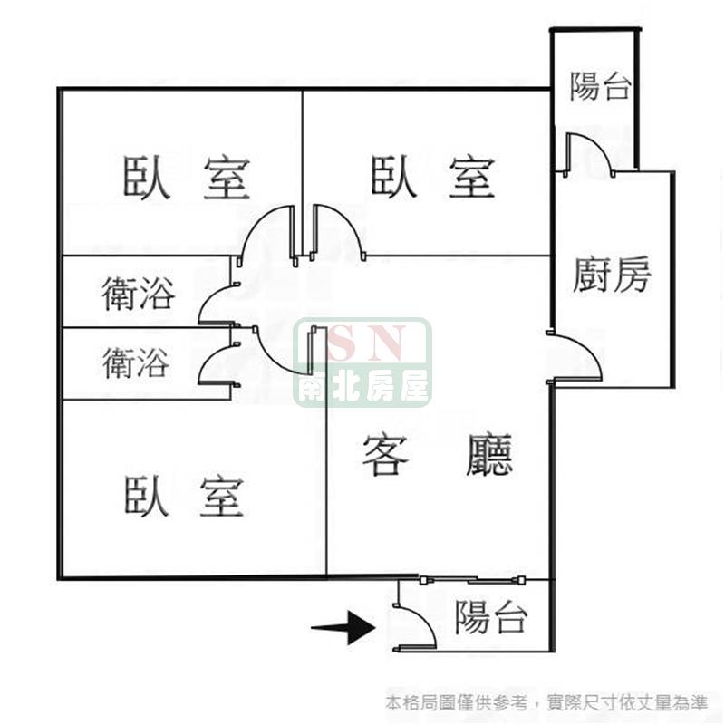 3房 2 廳 2 衛 2 陽
