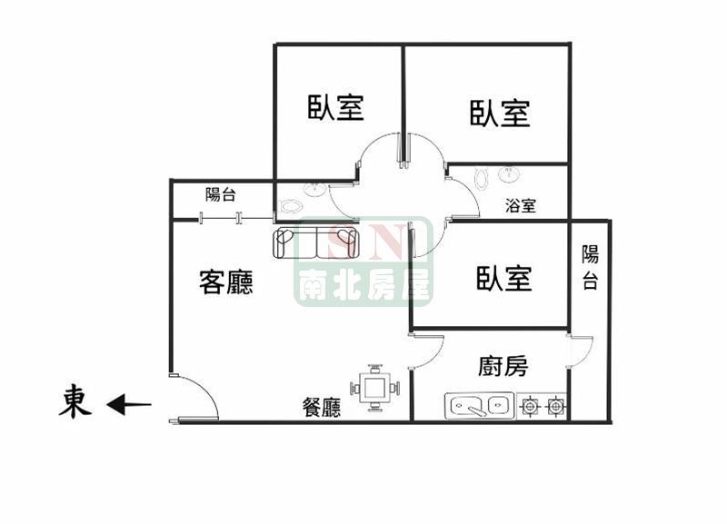 3房 2 廳 2 衛 2 陽