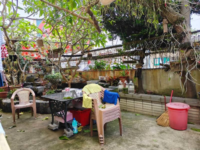 邊間採光好自帶假山造景花園 雙併設計建物六米寬格局空間大 約增建40坪可用空間有82坪 套房頂樓超大雜物間倉儲區 靜巷明亮近步道公所批發市集約十分鐘退休三代同堂首選